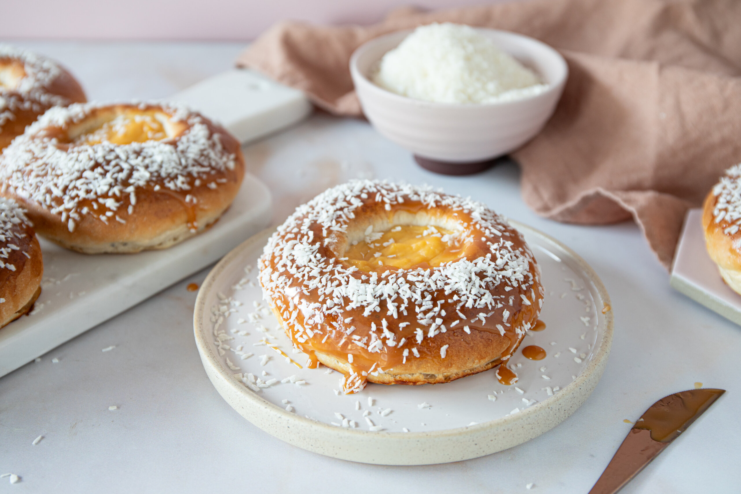 Hvis du ønsker å fryse bollene, er det lurt å vente med glasur og kokos til etter at de har tint.
